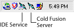 When ColdFusion is running in Windows 95 or 98, two icons appear in the system tray: