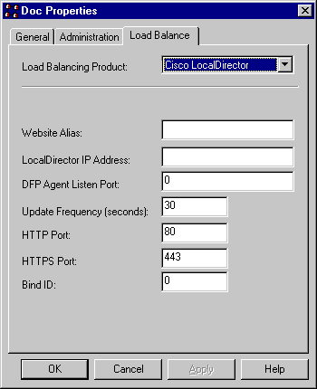 In order for the ClusterCATS/LocalDirector integration to work as intended, the server name, port number, and bind ID combination must be the same on this ClusterCATS Load Balance tab as it is on the LocalDirector box.