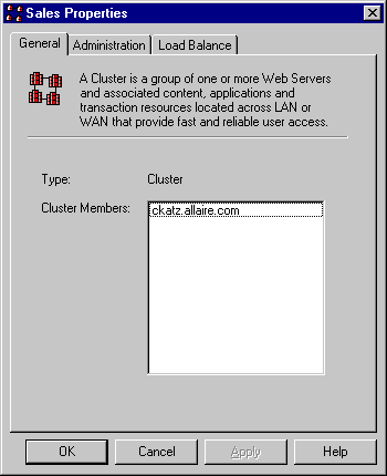 The Cluster Properties dialog box appears.