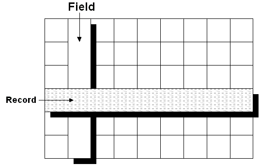 A database is a structure for storing information. Databases are organized in tables, which are collections of related items. For example, a table might contain the names, street addresses, and phone numbers of individuals. Think of a table as a grid of columns and rows. In this case, one column contains names, a second column contains street addresses, and the third column contains phone numbers. Each row constitutes one data record because the data in that row applies to a unique item, in this case, one individual. Rows are also referred to as records. Columns are also referred to as fields.