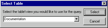 SQL Builder opens a SELECT statement by default, since this is the most common type of query. If you have not chosen a table, you will be asked to select one.