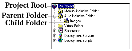 When you add a folder to a project, you must decide where that folder will fall within the project tree. You can add a folder to the project root or you can add a folder to an existing folder. When you add a folder to an existing folder, the new folder is defined as the "child" and the existing folder is the "parent." Understanding parent/child relationships between folders will become more important when you specify the deployment properties for the project. For now, you just need to know that they exist.